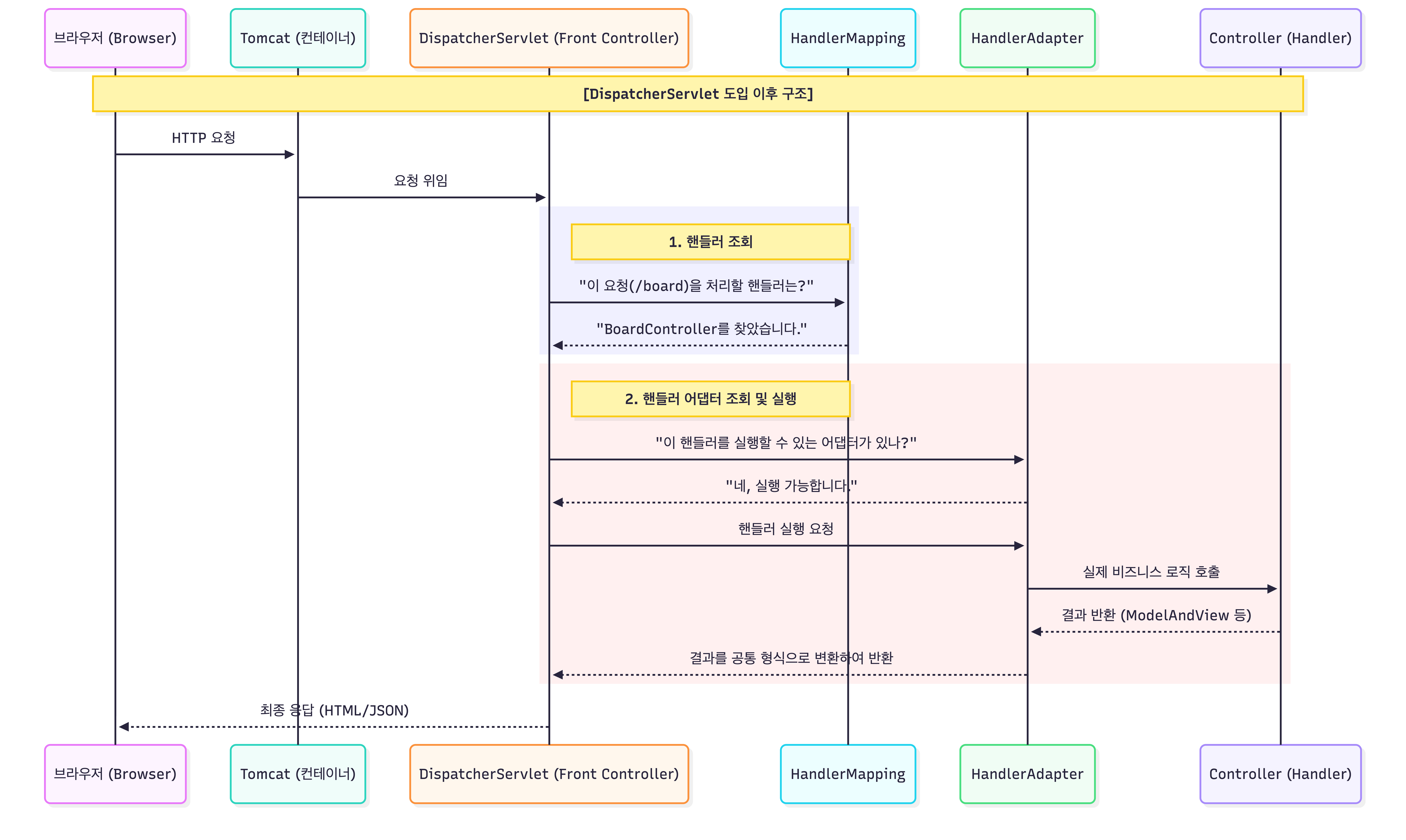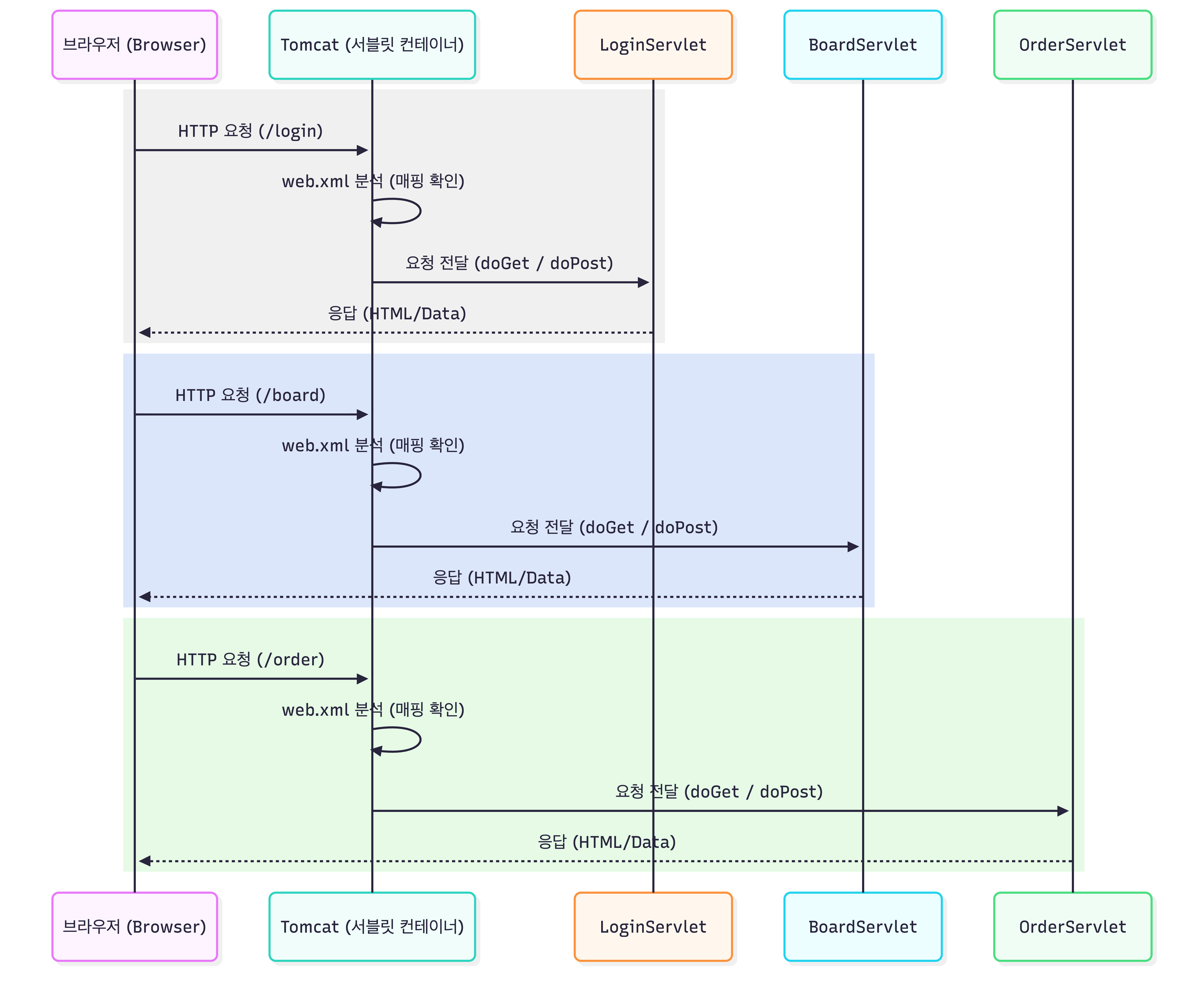 • 해당 요청을 처리할 서블릿을 호출하는 구조이다.