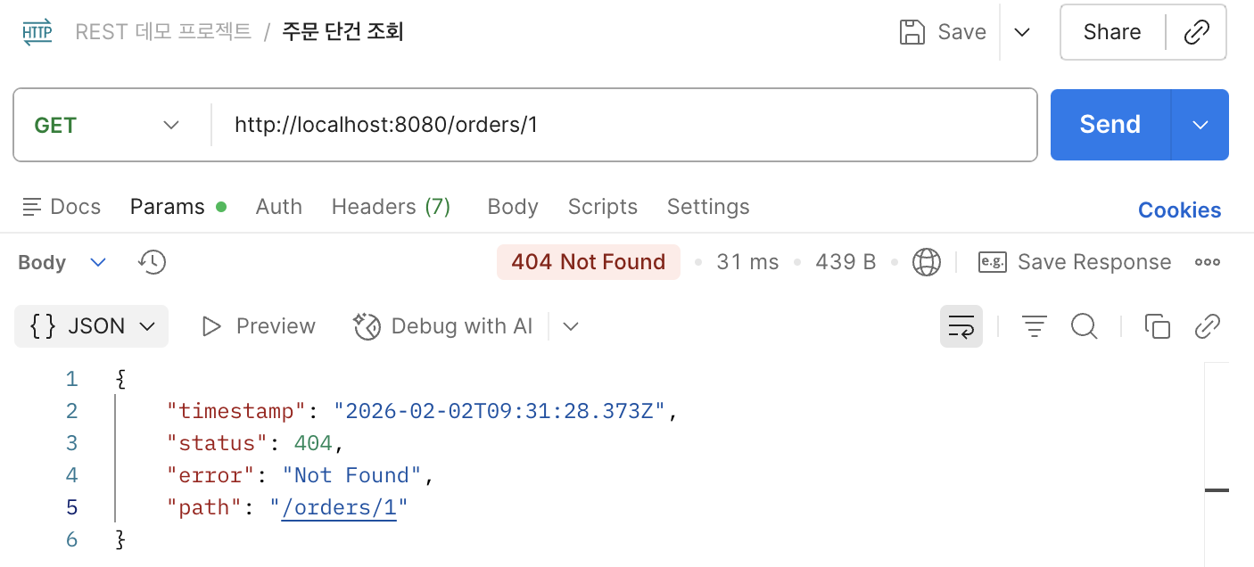 이후 동일한 자원에 대한 조회 요청을 보내면 **404 Not Found**응답을 받게 된다.