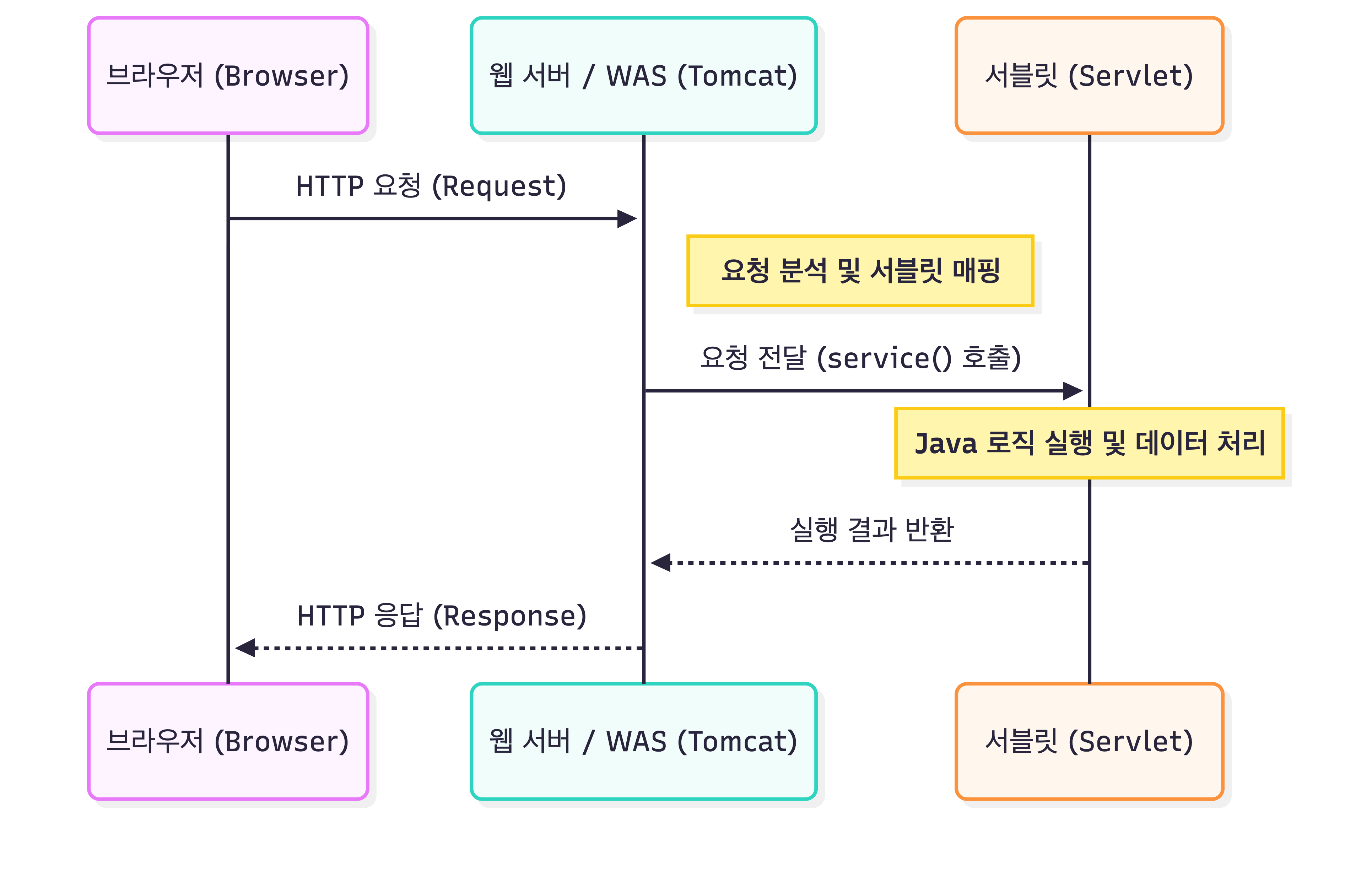 이를 서블릿이 어떤 역할을 하는지 중심으로 정리하면 다음과 같다.
